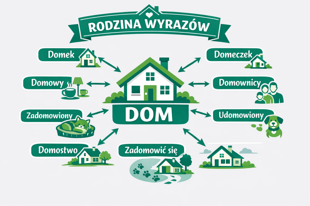 Rodzina wyrazów to grupa wyrazów mających wspólny rdzeń i zbliżone znaczenie; przykładowo przedszkolny i przedszkolak mają wspólną cząstkę „szkol”. Rozpoznawanie rodzin wyrazów pozwala zauważyć, że słowa o podobnym brzmieniu często opisują spokrewnione zjawiska.